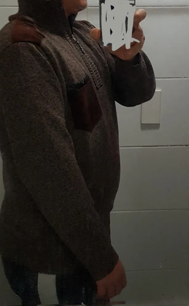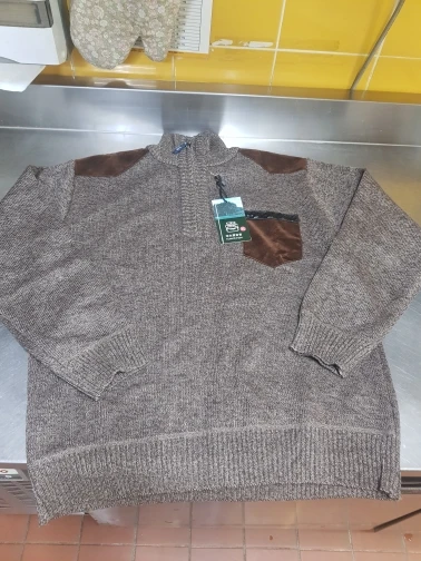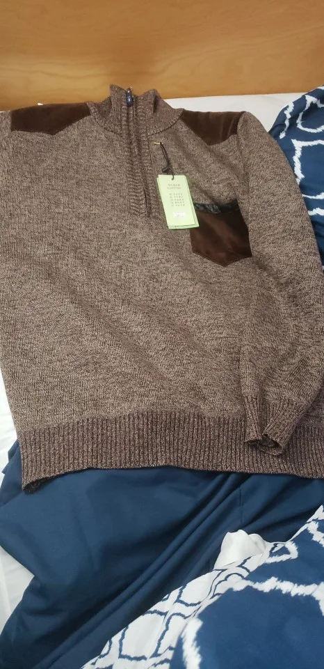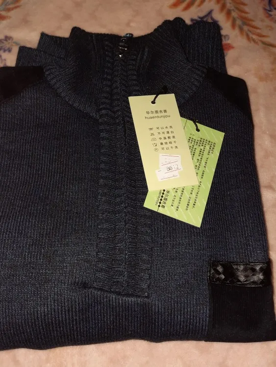 Оригинальный свитер. Сверху вроде шерсть, а внутри вроде фланель. В этом, если честно, ни чего не понимаю, но такой гладенький, что на голое тело можно надеть. Воротник высокий, до ушей достаёт. Брал XXL - как раз на 52 размер. Рукава чуточку короткие или у меня руки длинные. Рост 180. За такую цену - просто подарок. Доставка оставляет желать лучшего....но до весны ещё 2 месяца.