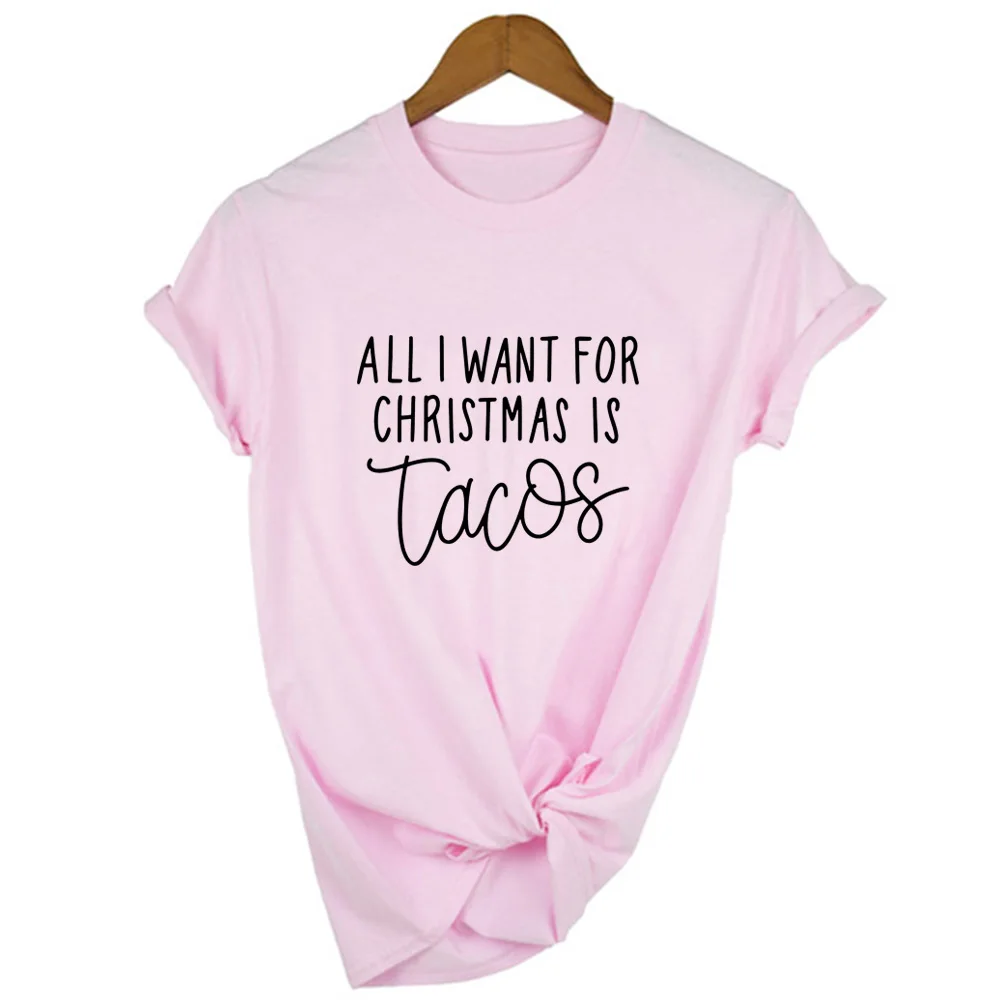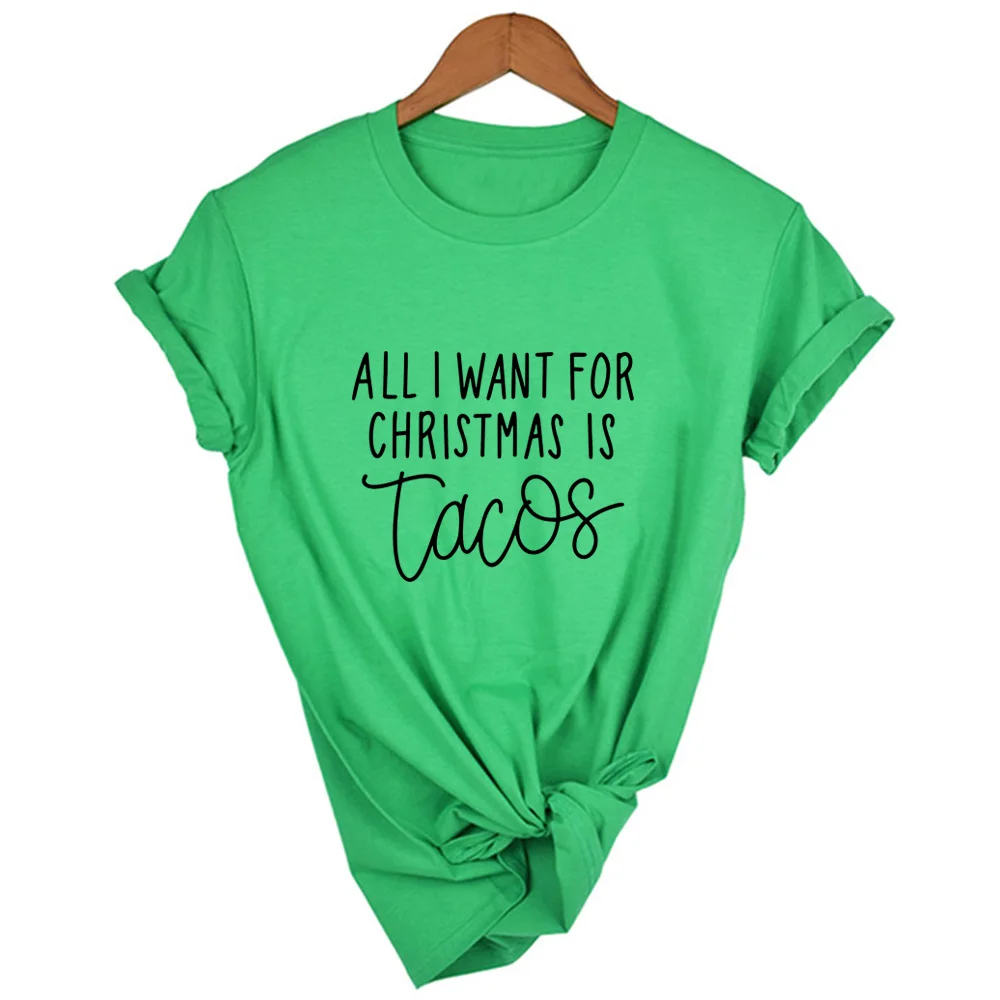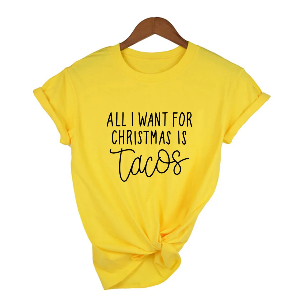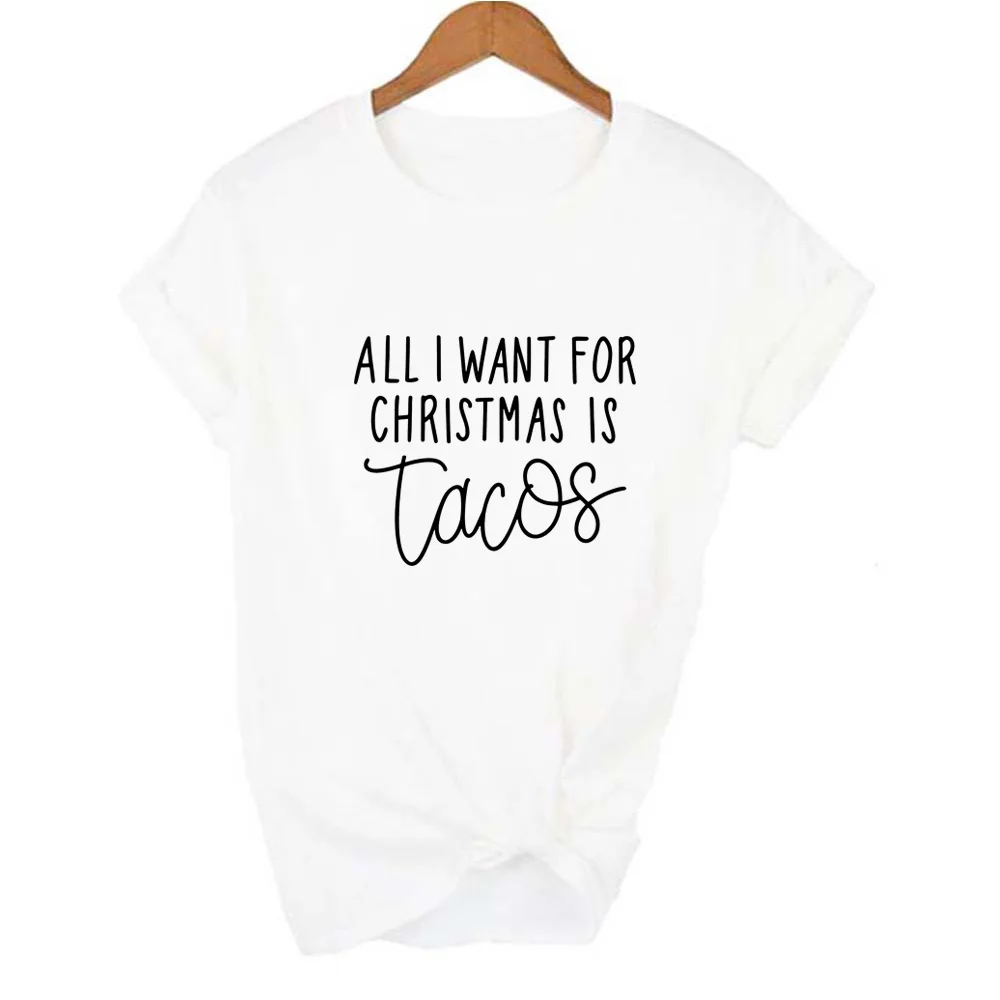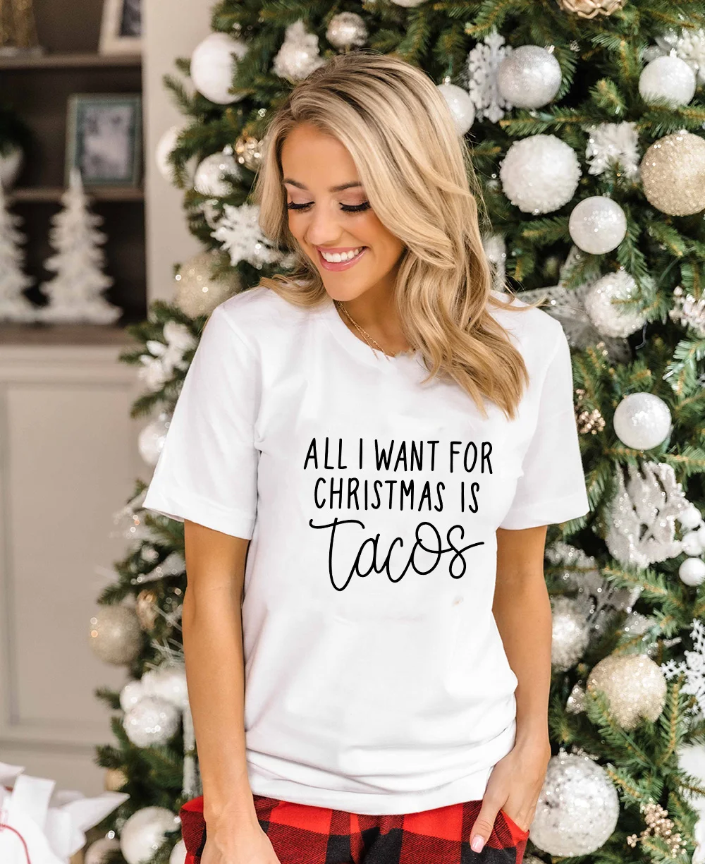 Все, что я хочу на Рождество, это принт Tacos, женские футболки, уличная одежда в стиле Харадзюку, забавная футболка, рождественские женские футболки с графическим рисунком, женская футболка