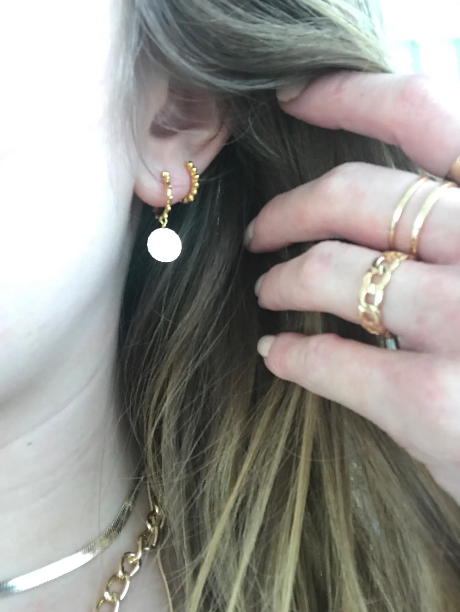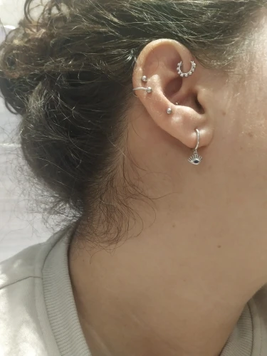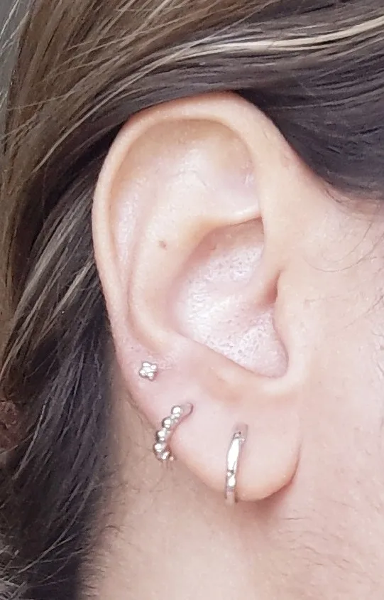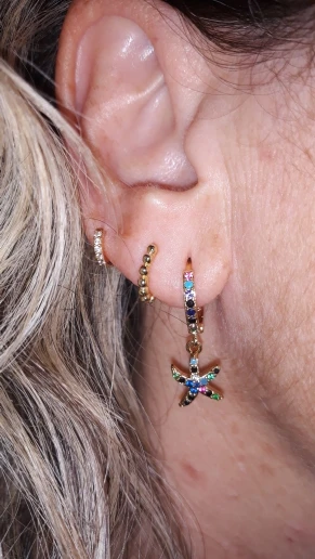 Estoy muy contenta. Ha llegado super rápido. Los pendientes son muy bonitos, pequeños, discretos con brillo y exactos a la imagen, yo cogí la talla 8 para el primer agujero y me están bien aun me sobran un poco.