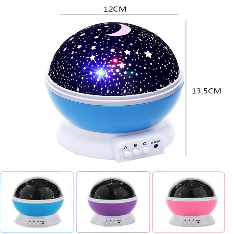 Ночной светильник, проектор, звезда, луна, небо, вращающийся на батарейках, прикроватная лампа для детей, детская спальная комната