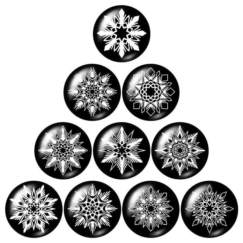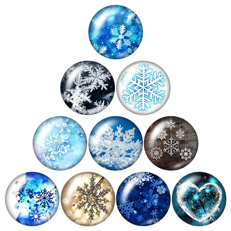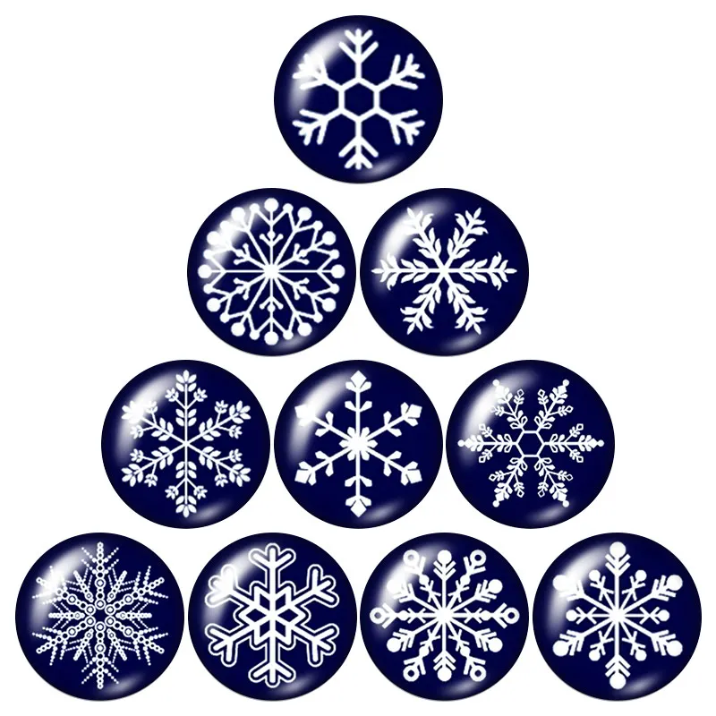 Зимняя Рождественская Снежинка 10 шт Смешанные 12 мм16 мм18 мм25 мм круглые фото Стеклянные Кабошоны, демонстрация с плоской задней частью