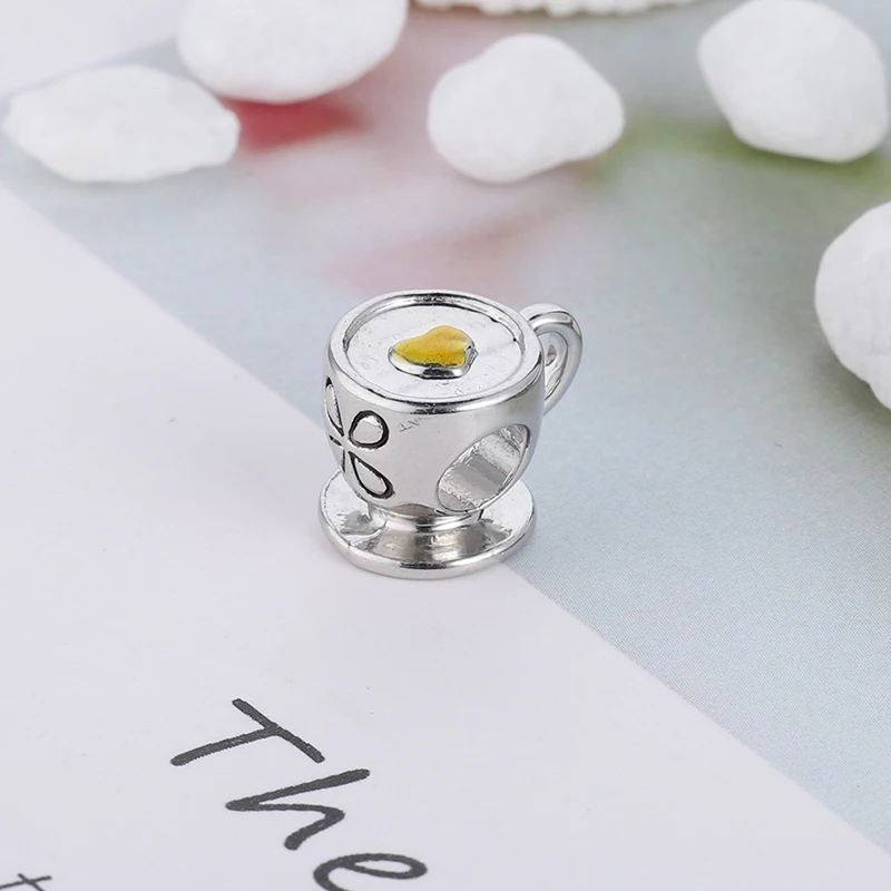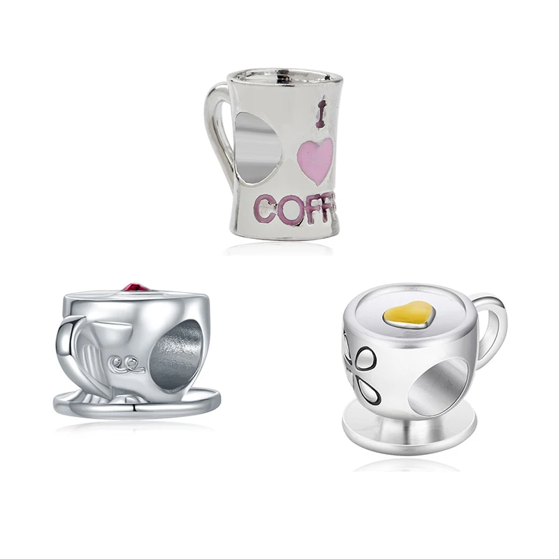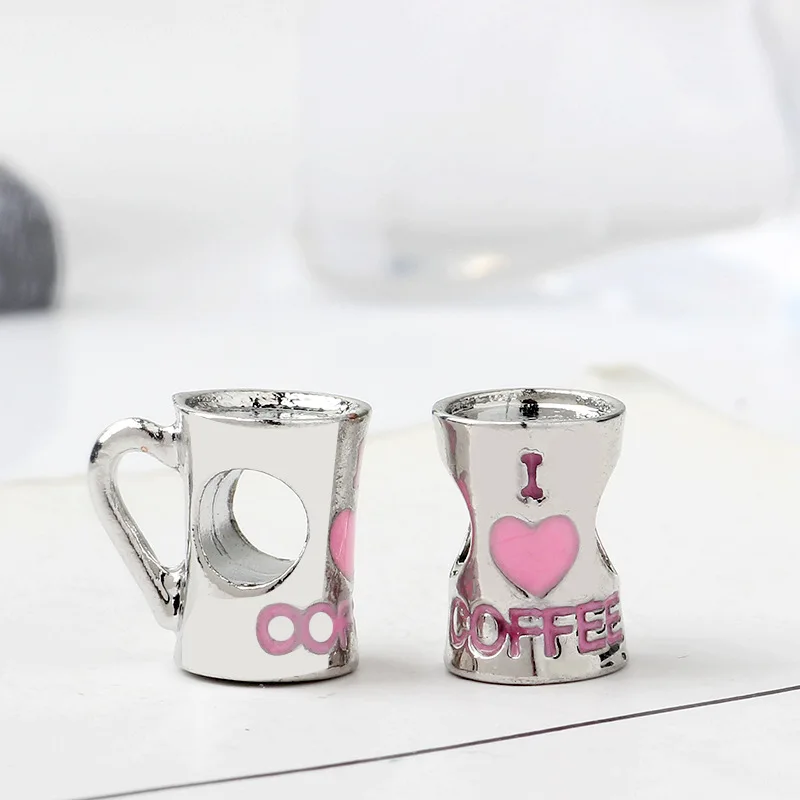 Новый оригинальный колье бусы бисер розовый коричневой эмалью любовь чашка кофе очарование, соответственные Пандоре обаятельные браслеты браслет DIY ювелирные изделия для женщин
