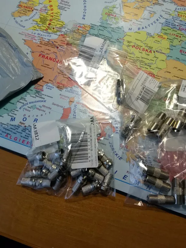Товар, соответствующие описанию, F-образная муфта, переходник, гнездовой разъем F/F RG6 или RG59 /, коаксиальный разъем SMA RF/F.С этой штуки можно соединить телевизионный кабель без паяльника. Однозначно рекомендую! Пришло в одном пакете с другими посылками.