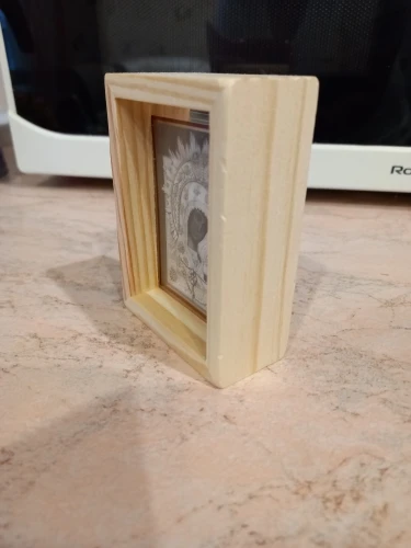 Здравствуйте! Крепления для стены нет, рамка скорее настольная, но дерево толстое, думаю, можно прибить петлю