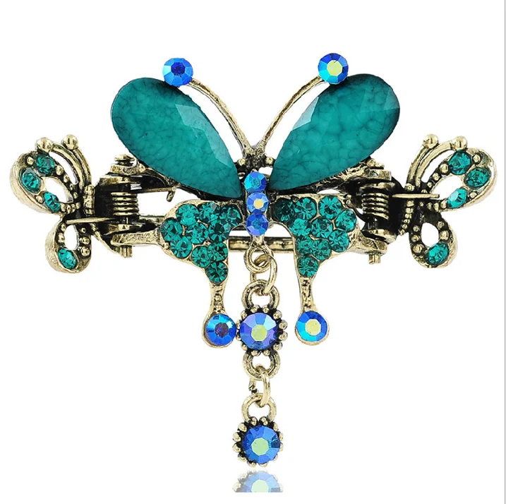 Элегантная заколка для волос с кристаллами бирюза Бабочка Цветок Краб заколки для волос Популярные женские заколки для волос из сплава аксессуары для укладки волос