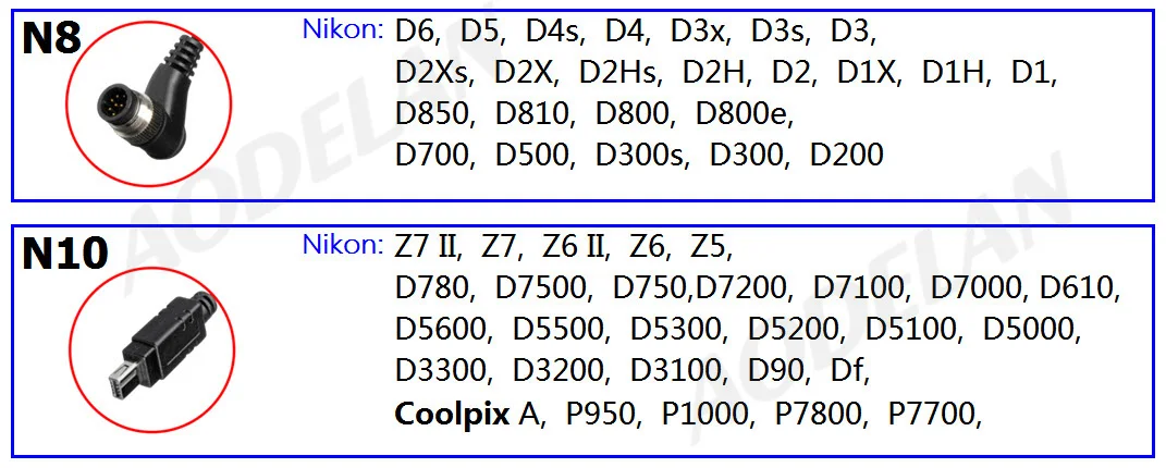 Пульт дистанционного управления с интервалометром AODELAN MC-DC2 для Nikon Z6II, Z7II, Z7, Z6, Z5, D750, D780, P1000, D7500, D7200, D5600, D5500, D5300