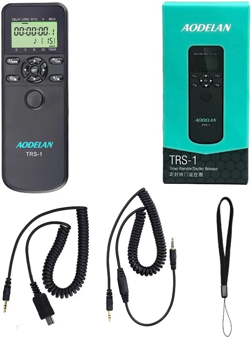 TRS-1 AODELAN будет работать как таймер и дистанционный спуск затвора. Помимо полных функций спуска затвора, он также имеет функции размножения таймера: Таймер задержки, таймер длительного экспозиции, интервальный таймер, а также настройки количества экспозиции; его временные параметры может быть с точностью до 0,1 секунд. TRS-1 отлично подходит для временной записи цветущих цветов, астрофотографии и т. д.