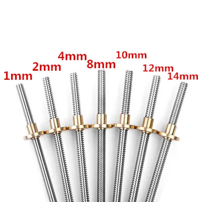 Ходовой винт OD 10 мм для 3D-принтера, 2 мм, 4 мм, 8 мм, 10 мм, 12 мм, 100 мм, 200 мм, 300 мм, 400 мм, 500 мм-950 мм с гайкой для Reprap