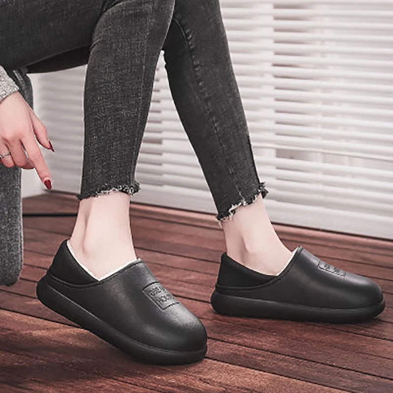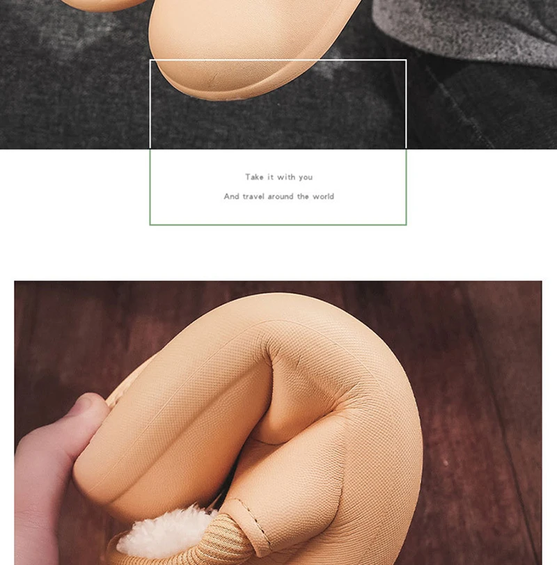Зимние теплые хлопковые тапочки; Женские бархатные Нескользящие лоферы на толстой подошве; Домашняя обувь; Женские водонепроницаемые Тапочки для пар