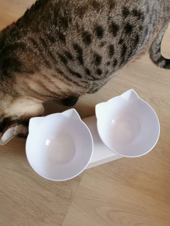 Миски удобные, собака не горбится (Йорк), это то, что я и хотела от миски для животного. Объем чашек достаточный. С подставки ничего не соскакивает. Буду заказывать ещё одну одиночную миску такого же плана для воды отдельно. Полностью соответствует описанию. Спасибо продавцу за доставку и товар. Упаковано на отлично, ничего не побилось в пути.
