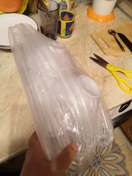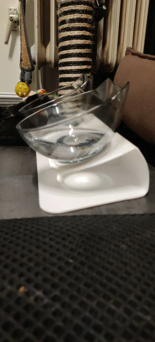 Продукт был упакован в пластиковую воздушно-пузырчатую фольгу и выглядел нормально. Качество выглядит хорошо после первого использования. Имейте в виду, что в чашу можно добавить только небольшое количество воды из-за его выравниваемого крепления. Кот доволен этим.