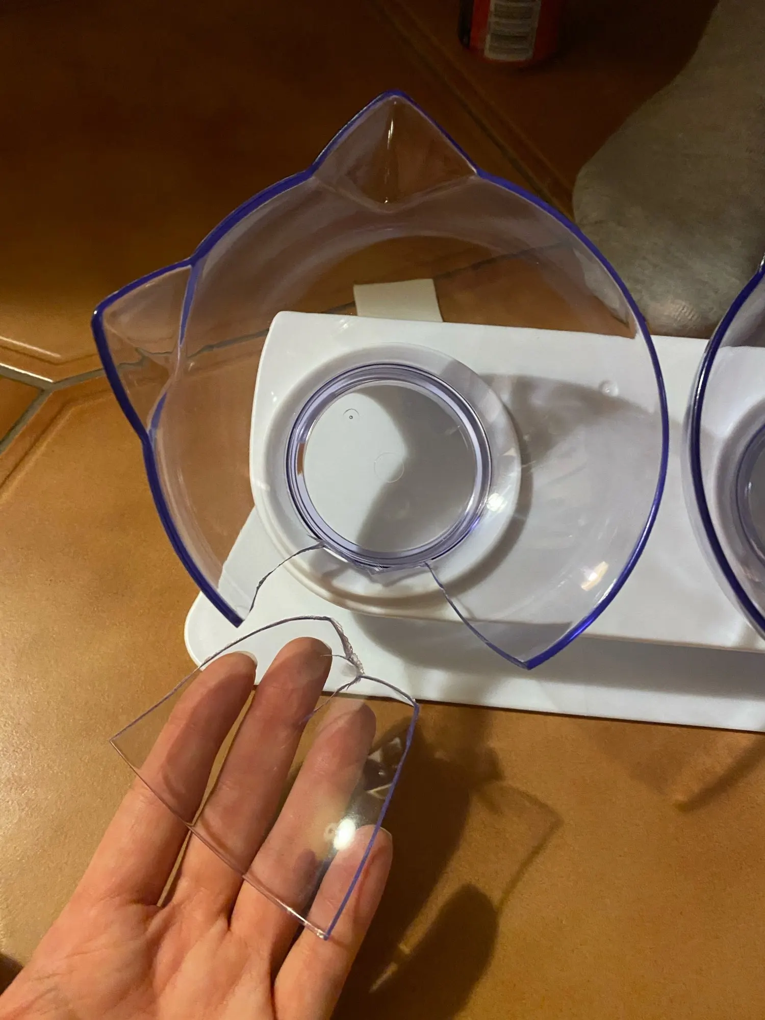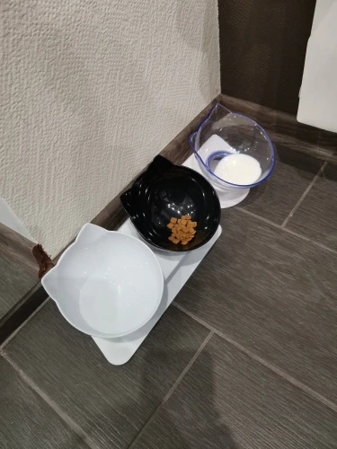 Хорошее качество пластика. Действительно такая сдвоенная миска выглядит стильно (сравните по фото с обычной) В общем по качеству товара вопросов нет. Единственный нюанс: если вы планируете использовать сдвоенную миску как миску для еды и воды, то ничего не выйдет, т.к миски довольно плотно сидят в посадочных местах и неудобно одну из них вытаскивать чтобы менять воду каждый день.