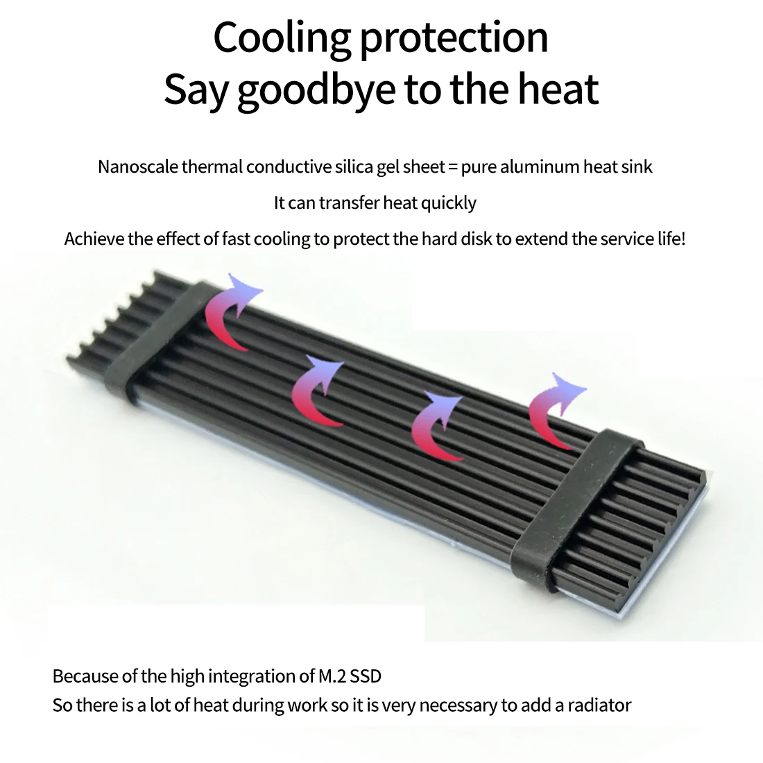 Особенности:Изготовлен из высококачественного материала, прочный, прочный и устойчивый для нас в использовании.Обновленная версия, с лучшей теплоотдачей.Поддержка отвода тепла для различных типов M.2 твердотельного жесткого диска.Поставляется с силиконовой накладкой и резиновой лентой для легкой установки.Термопрокладки могут использоваться для заполнения главного чипа и микросхем флэш-памяти высотой и увеличения эффекта охлаждения.Только радиатор, другие аксессуары демонстрационные на картинке не включены!