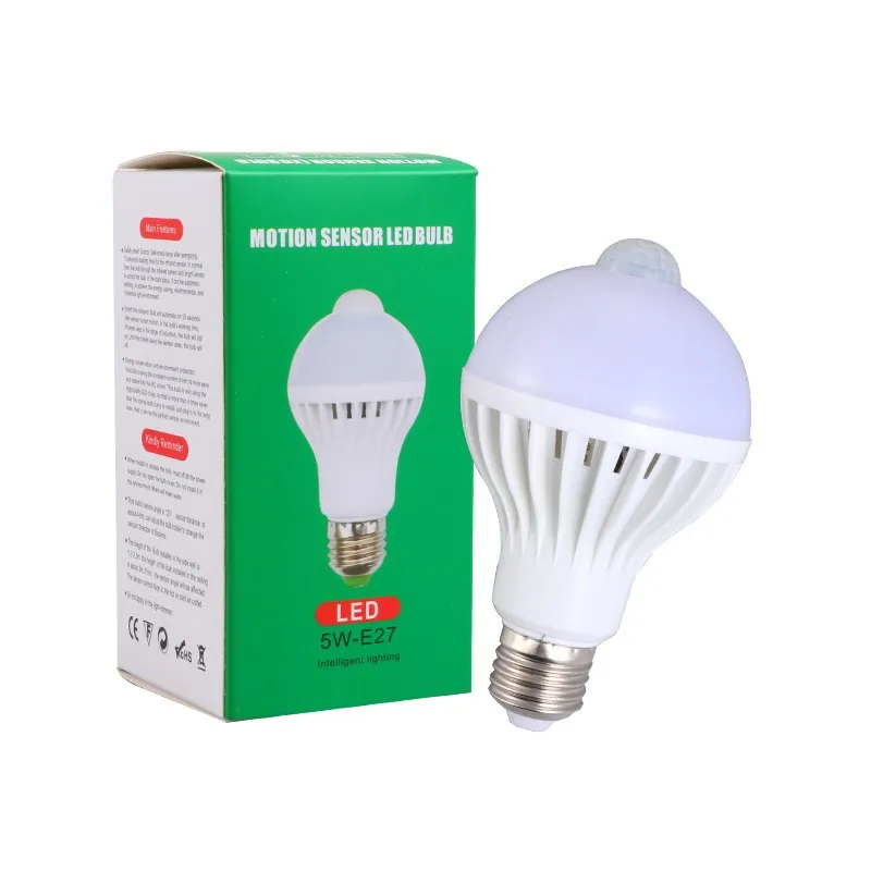 Светодиодная лампа E27, белого света с датчиком движения, 3 Вт, 5 Вт, 7 Вт, 9 Вт, 12 Вт, 220 В