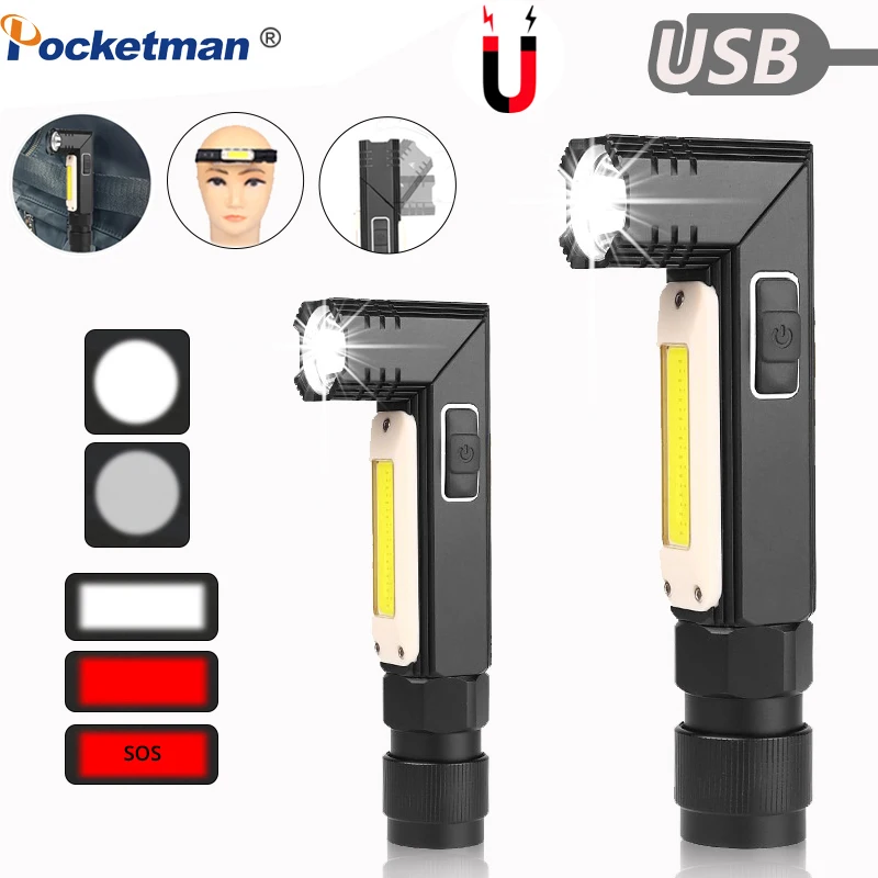 Магнитная светодиодная вспышка, самый яркий Тактический COB-светильник, водонепроницаемый USB Перезаряжаемый фонарь, задсветильник фонарь, вращение на 90 градусов