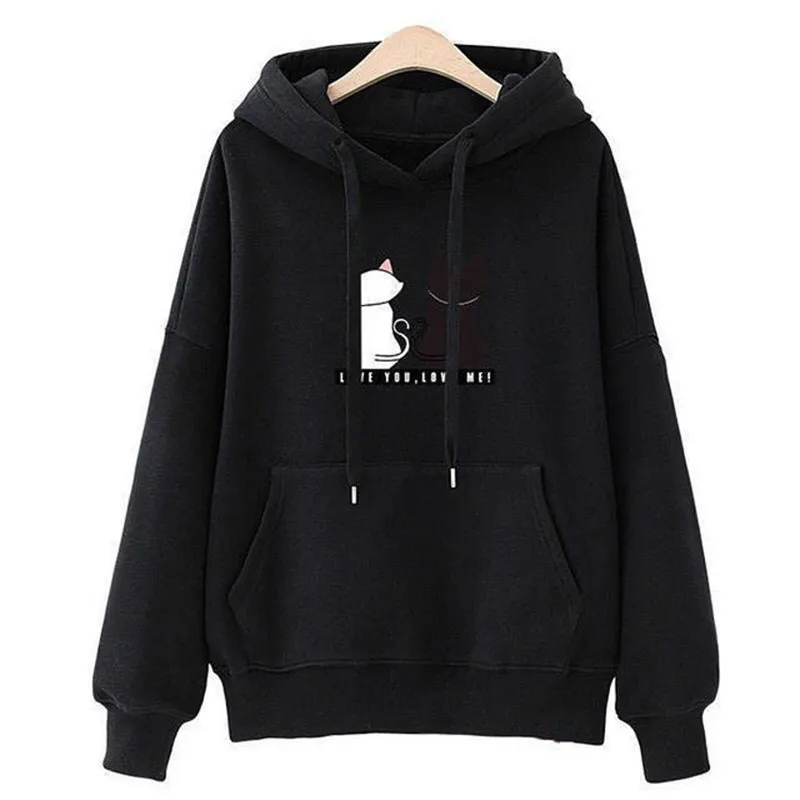 Уличные толстовки, Женская толстовка, осенняя толстовка с капюшоном с длинным рукавом, в стиле Харадзюку, с принтом кота, Женская толстовка