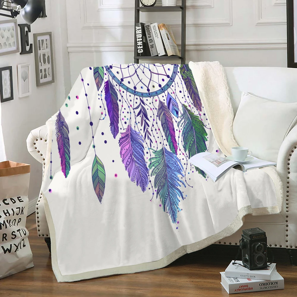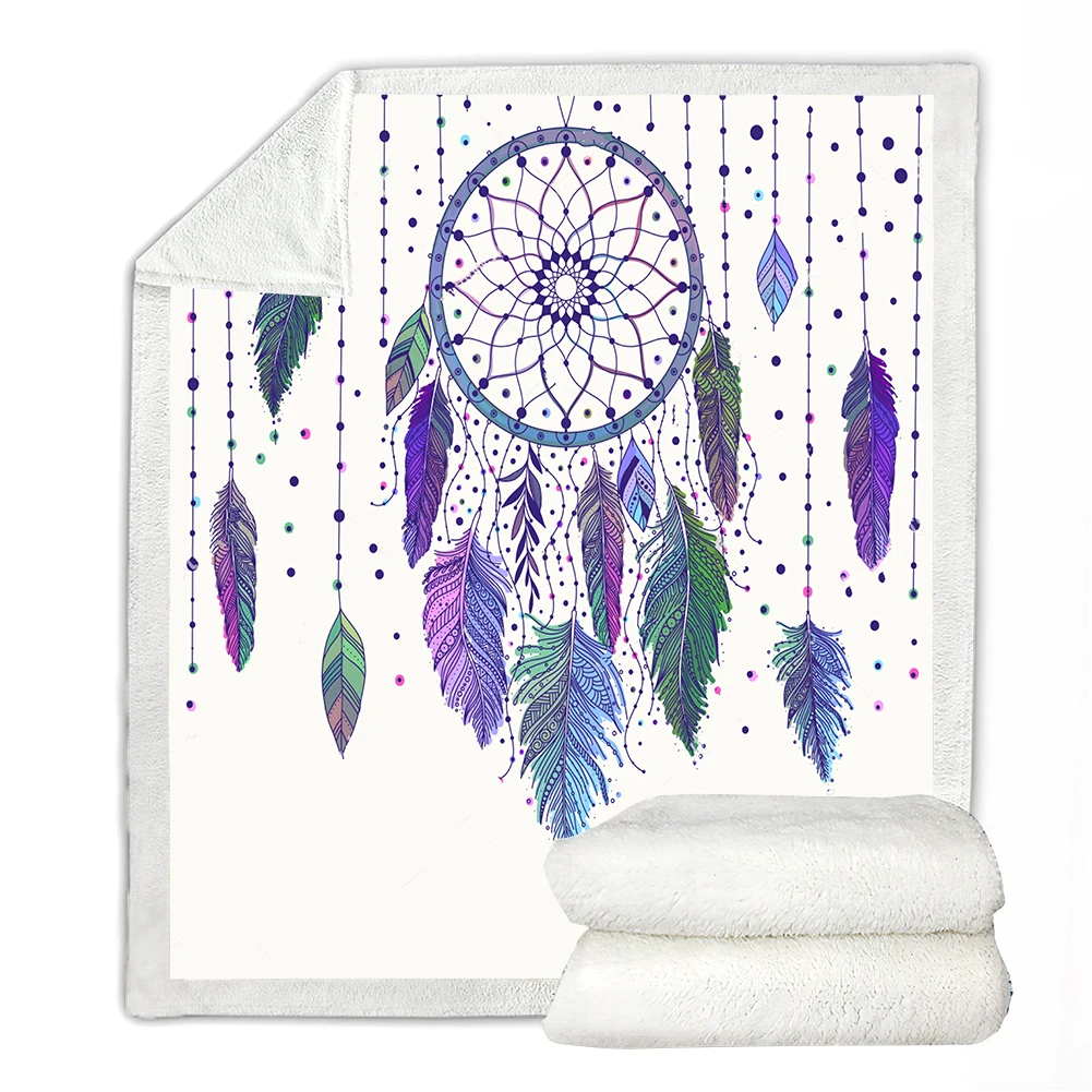 Одеяло Ловец снов, фиолетовое одеяло с перьями, мягкое удобное плюшевое одеяло мечты, шерпа, Флисовое одеяло для дивана, спальни