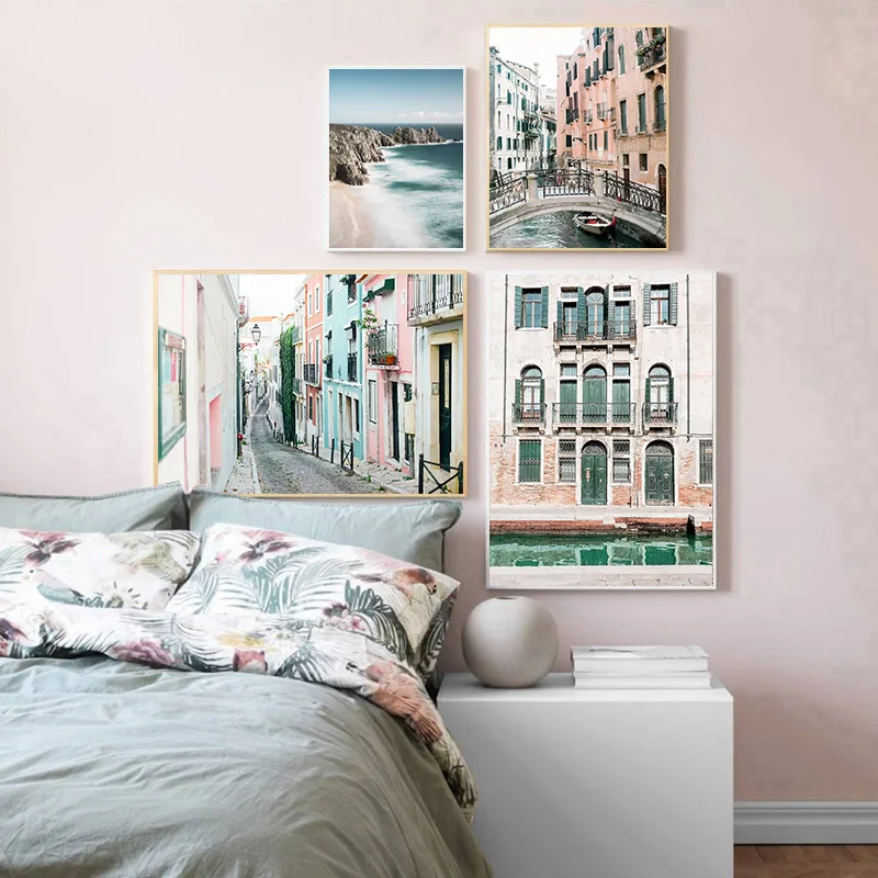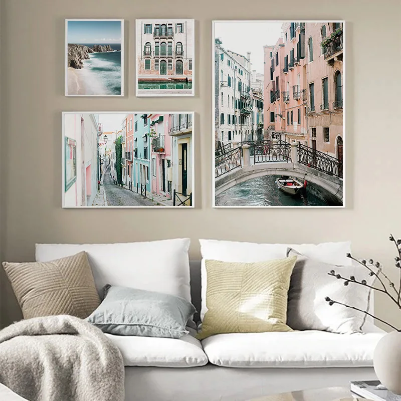 Плакат на холсте с изображением итальянского венецианского пейзажа, архитектуры, городского пейзажа, настенная живопись, картина с изображением океана, пляжа, современный декор для гостиной