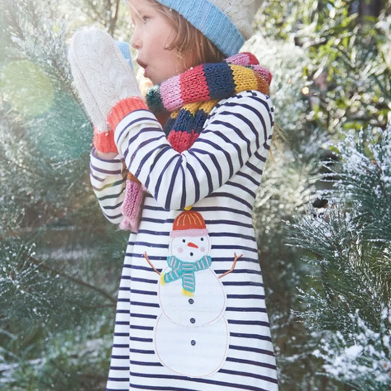 Рождественское платье принцессы для маленьких девочек с аппликацией снеговика; Вечерние хлопковые платья с длинными рукавами для детей