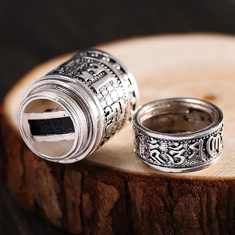 Кольца унисекс, тибетские, спиннинговые, из серебра 925 пробы
