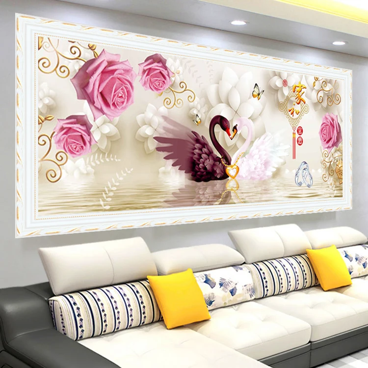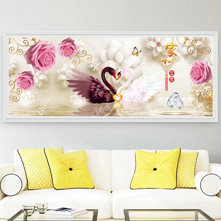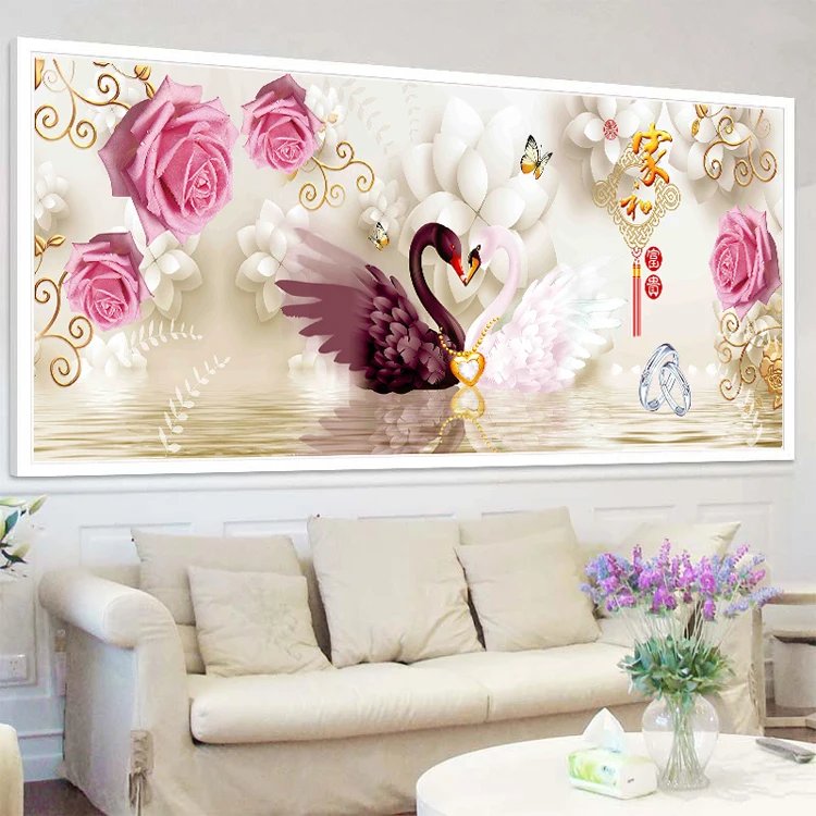 Алмазная картина с лебедями, мозаика из страз в гостиной, спальне, ...