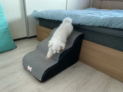 Лестница хорошая, чехол сшит качественно. Собакам удобно то, что ступени пологие, маленькие собаки сразу научились и подниматься и спускаться без проблем. К дивану с высотой сидения 45 см подошла идеально. Товар отправлен сразу, но шел долго при том, что доставка стоила дороже самой лестницы (по территории России шло службой ДПД). Но все равно вышло дешевле, чем аналогичные на заказ у нас. Рекомендуем