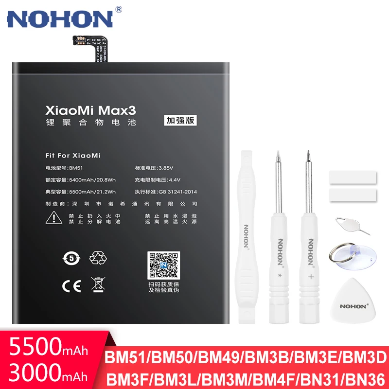 Аккумулятор NOHON BM51 BM50 BM49 BM3B BM3E BM3L BM4F для телефона Xiaomi Mi Max 3 2 5X 6X CC9 9 9SE 8 8SE Mix2 Mix2S Max3 Max2