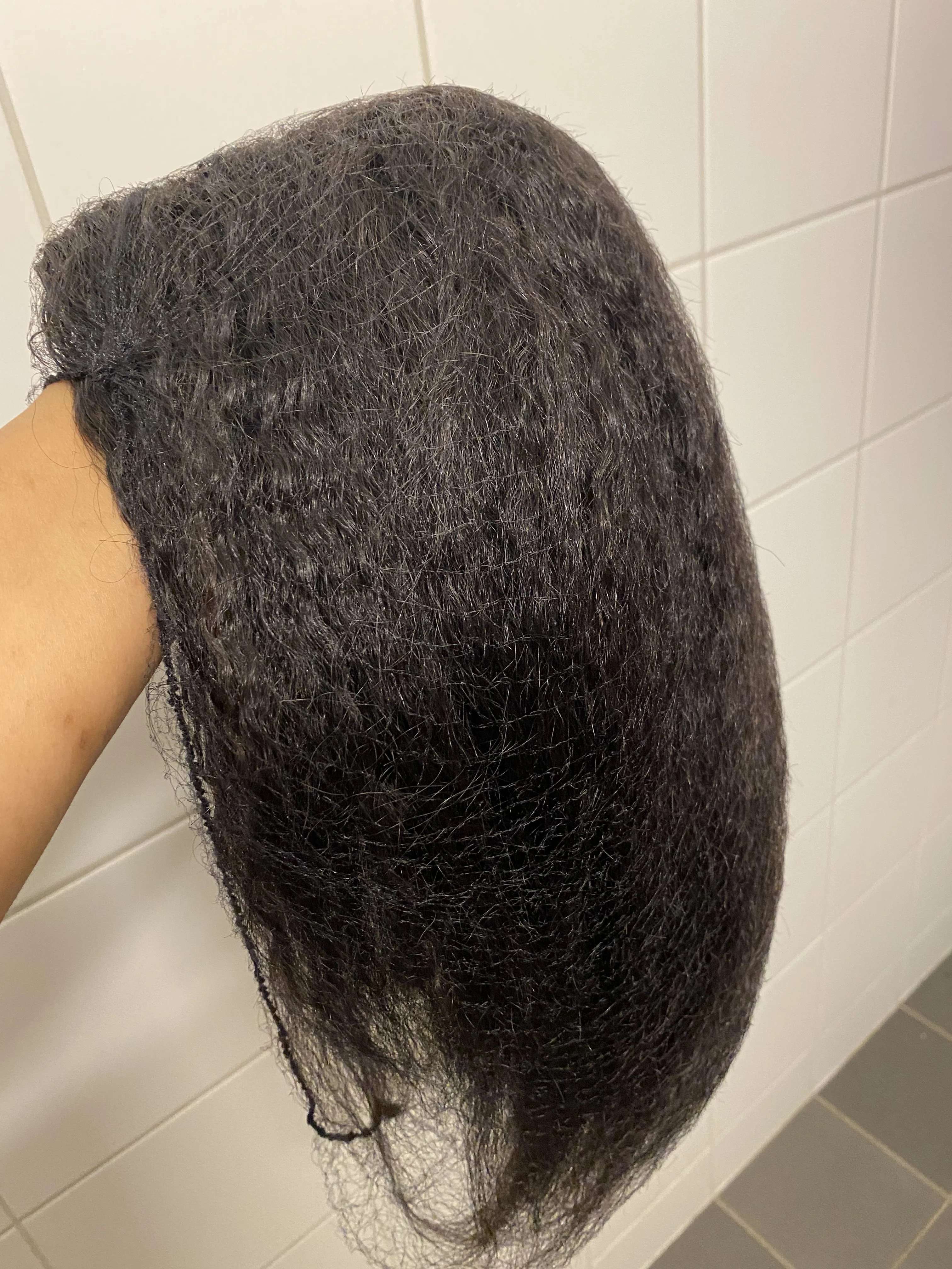 This hair is full of grey hairs. But the grey hairs were dyed a bright orange copper colour. I had to pluck out a lot of it but could not remove them all. You know grey hair because it also has a hard hay texture, unlike normal hair. If you ever do a review, go outside to the natural light. This is where you will be most of the time. Don't be indoors in your bedroom or bathroom e.t.c. Outside during daylight with the Sun up. That is when you will notice. Pray over the hair because you don't know who it came from. The "natural" texture it intends on is ok. But these copper dyed, hard grey hairs is not good.