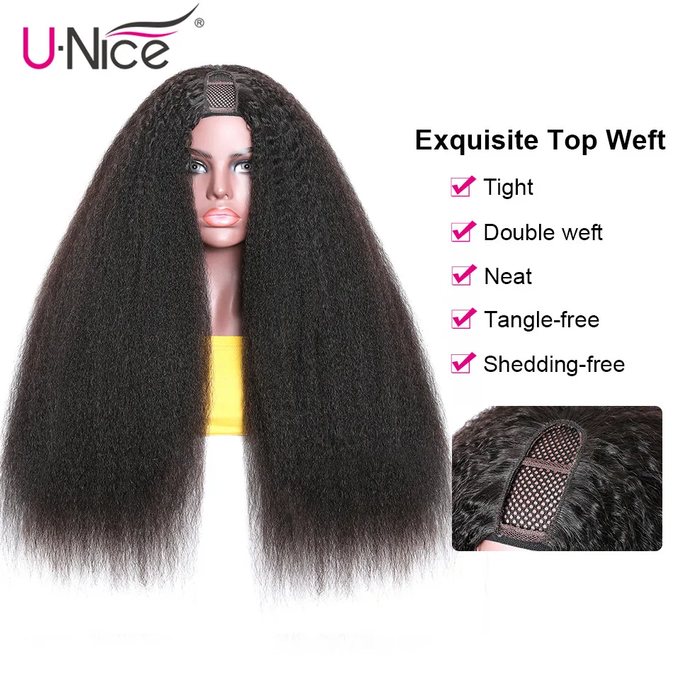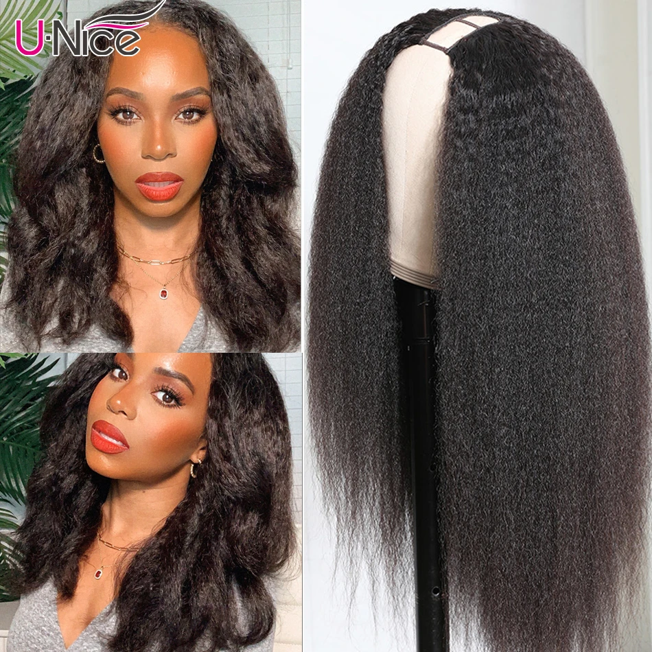 Волосы Unice U PART парик кудрявые прямые Доступные человеческие волосы парики без клея быстро и легко u-часть парик 180% Плотность