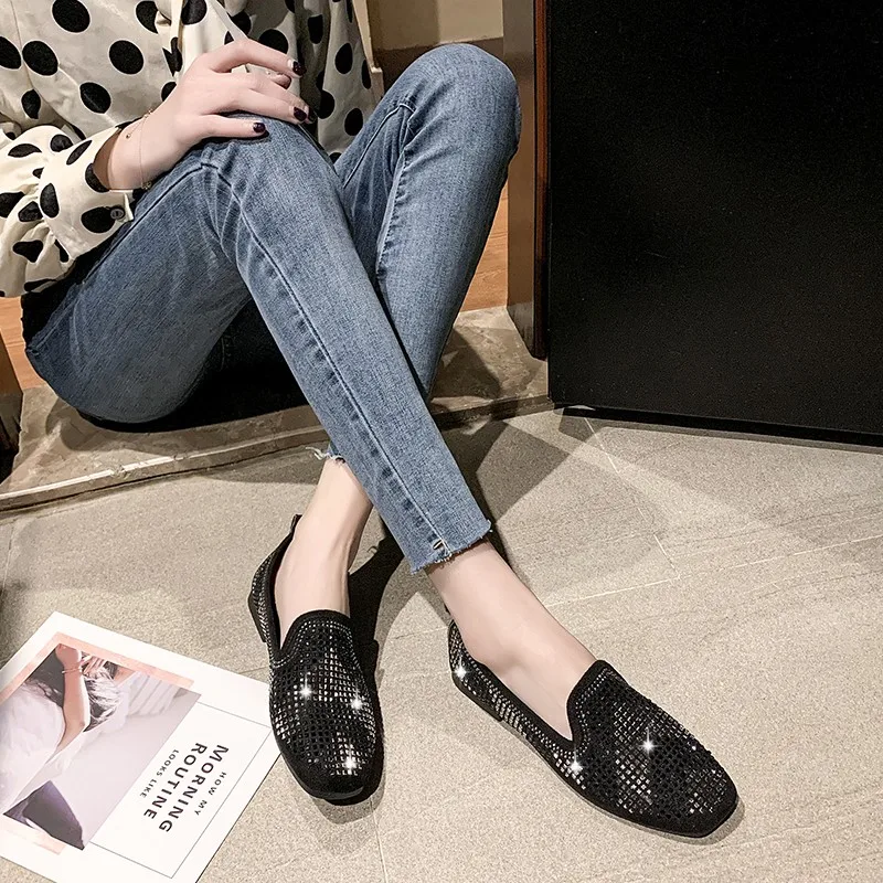 2020 весенние женские лоферы на плоской подошве, Мокасины с блестками женская обувь, лоферы на шнуровке, Повседневные слипоны, для прогулок, женская обувь F2