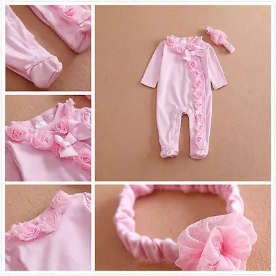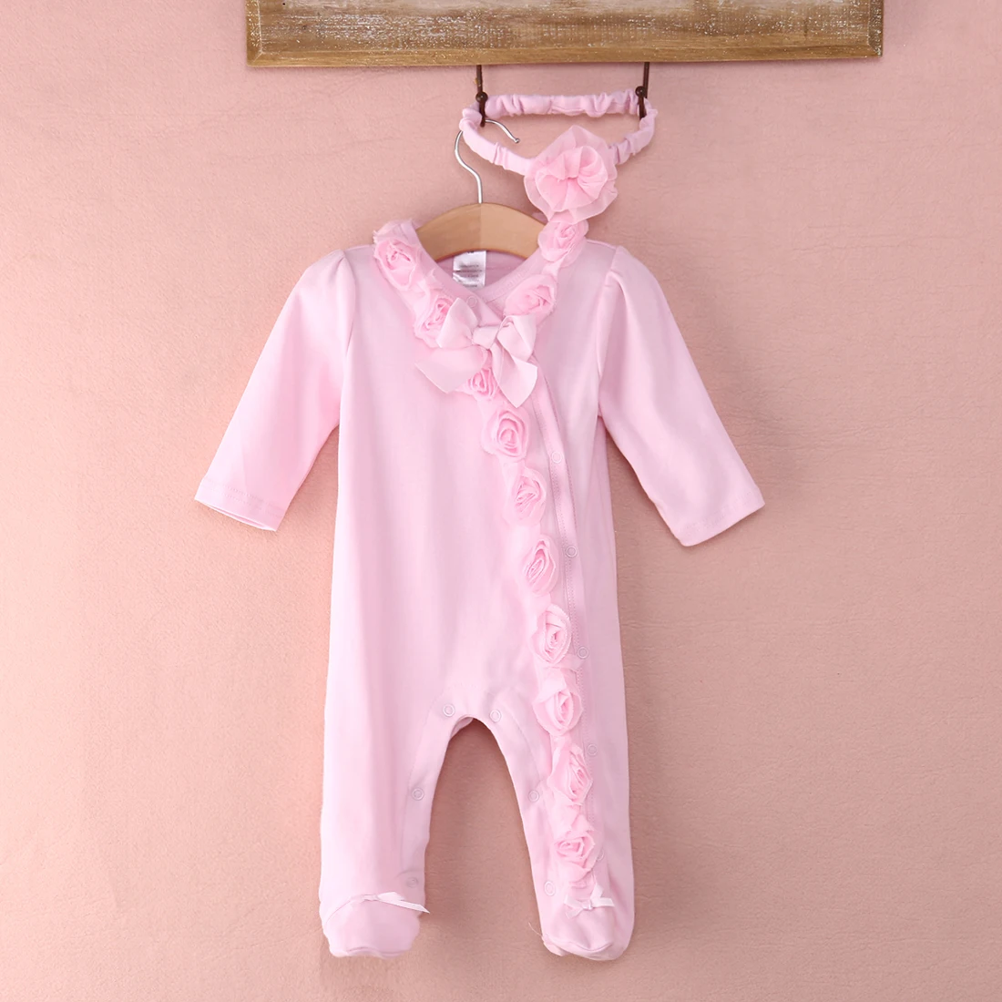 Комбинезон с длинным рукавом и повязкой на голову для новорожденных девочек