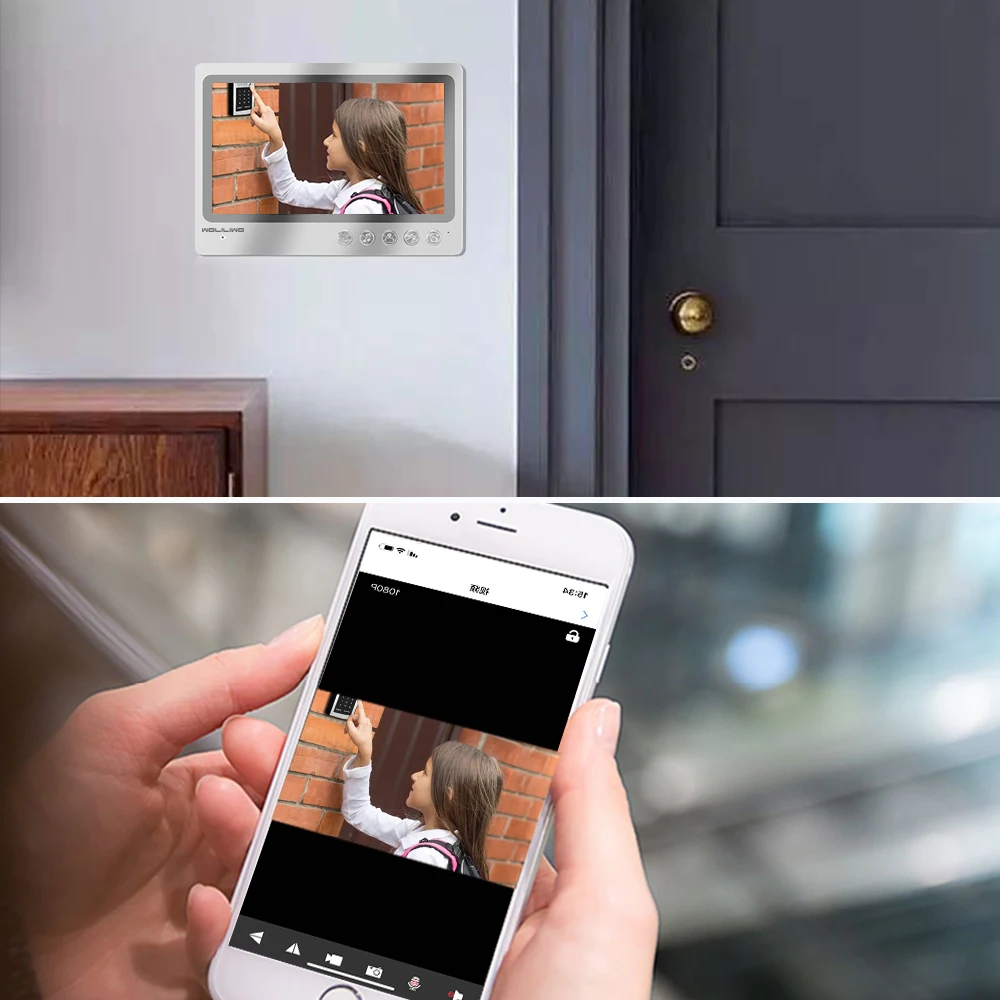 Монитор поддерживает сеть Wi-Fi (только для подключения с 2,4 ГГц маршрутизатор band), но внутренний монитор и дверной звонок проводной. Монитор, подключенный к маршрутизатору, может передавать сигнал Wi-Fi, и вы можете управлять системой видеодомофона на свой мобильный телефон под этим сигналом WiFi.