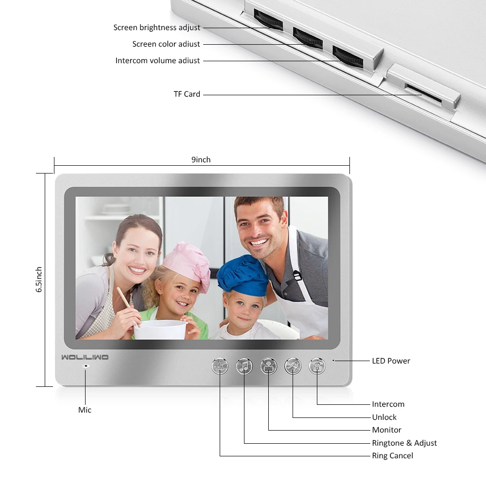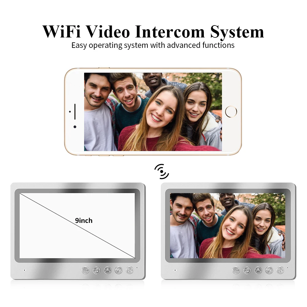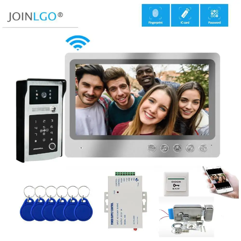 Видеодомофон 9 дюймов, Wi-Fi, домофон, рчид, сканер отпечатков пальцев, клавиатура, дверной звонок, угол обзора 120 градусов, камера, Удаленная разблокировка