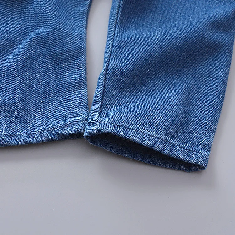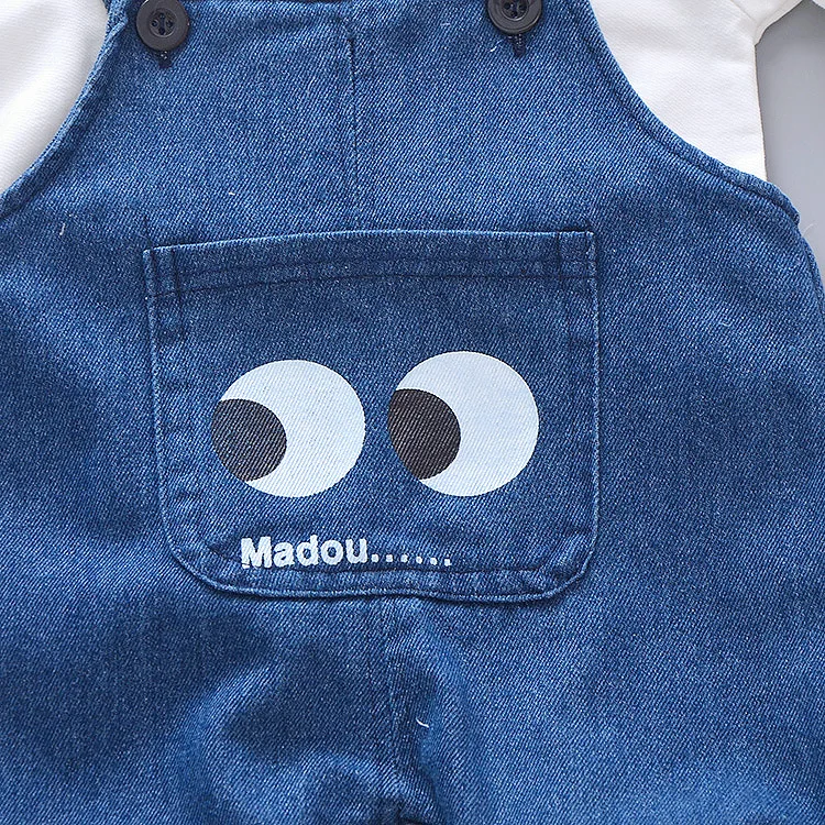 Джинсовый комбинезон для маленьких мальчиков, хлопковая повседневная одежда в полоску, джинсы с мультяшным принтом, костюм из двух предметов, весна-осень