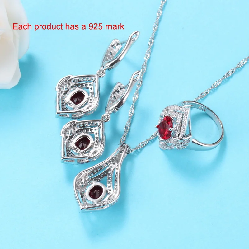 Розовый красный свадебный комплект ювелирных изделий 925 Серебряный кубический цирконий Свадебные наборы ожерелье и серьги браслет кольцо 10 цветов женский костюм