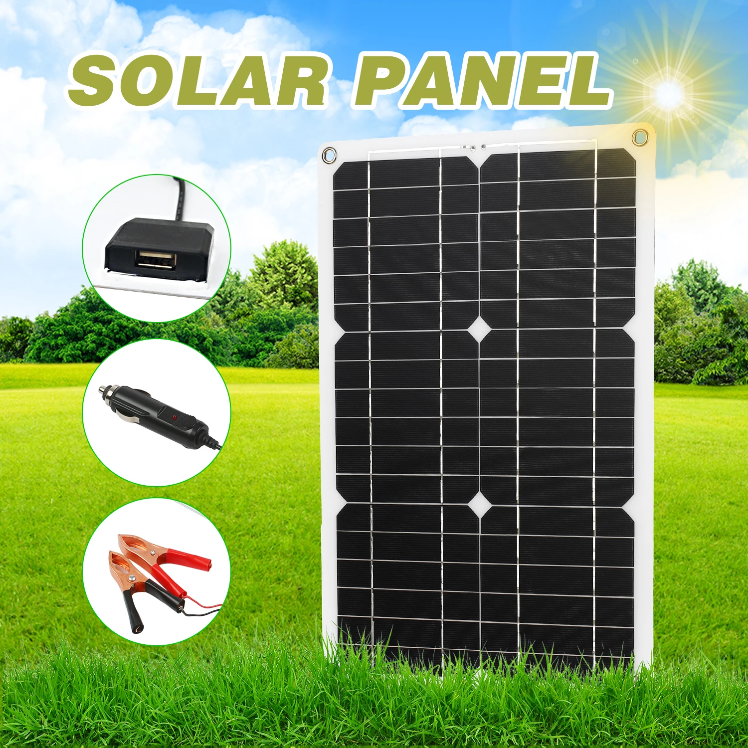 Особенности:Набор солнечных панелей без купюр --- монокристаллическая солнечная панель и экологическая ПЭТ-пленка, безопасная для использования с длительным сроком службы. Защита окружающей среды от солнечной энергии, без купюр и удобна в использовании.Портативный дизайн --- небольшой размер и светильник, легко носить с собой для кемпинга или других видов активного отдыха. Легко устанавливается с предварительно просверленными отверстиями на задней панели для быстрого крепления и крепления.Подключи и играй --- встроенный usb-порт на солнечной панели, поставляется с 4 видами зарядных кабелей, подходит для большинства устройств, подключи и работай, избегайте неожиданного отключения питания.Водонепроницаемый --- Улучшенный уровень защиты от воды и пыли, полная защита от частиц окружающей среды и струй воды низкого давления.Широкое применение --- широко применяется для автономной системы зарядки аккумулятора 5/12 вольт и различных приложений постоянного тока, включая караван, RV, автомобиль, лодку, зеленый дом, морской, сухой Кемпинг, садовый полив, сарай, кабина, открывалка ворот и т. Д. Характеристики:Материал: ПЭТЦвет: черный и белыйПанель: монокристаллическая солнечная панельМощность: 180 Вт (макс.)DC Выход: 12V 2.5AВыход USB: 5 В 1.7AЭффективность трансформации: 20%Степень защиты: IP65Вес изделия: 452 г/15,9 унцийРазмер панели: 420*280 мм/16,54 * 11.02in КонтроллерМатериал: АБС-пластикЦвет: черный и синийНапряжение: 12 В/24 В/48 В (Авто)Ток зарядки: 10-100 АВыходной ток: 10-100AМаксимальный Солнечный вход: <50 вПлавающее напряжение зарядки: 13,7 в (defaul, регулируемый)Напряжение остановки разряда: 10,7 В (дефол, регулируемый)Разряда восстановить напряжения: 12,6 V (defaul, регулируемый)Самостоятельное использование: <10 мАВыход USB: 5 В 3A USB портыРабочая температура: от-35 ℃ до 60 ℃Вес изделия: 128 г/4,52 унцийРазмер товара: 133*70*31 мм/5,5*2,76 * 1.22in Посылка:1 * солнечная панель1 * автомобильный зарядный кабель1 * кабель с зажимом1 * зарядный кабель постоянного тока1 * адаптер зарядного кабеля постоянного тока