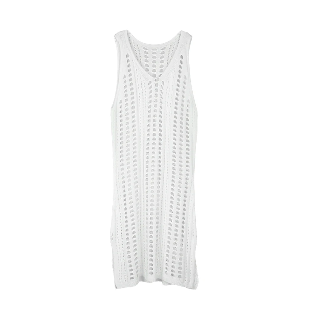 Женское прозрачное трикотажное пляжное платье-накидка без рукавов с защитой от УФ-лучей