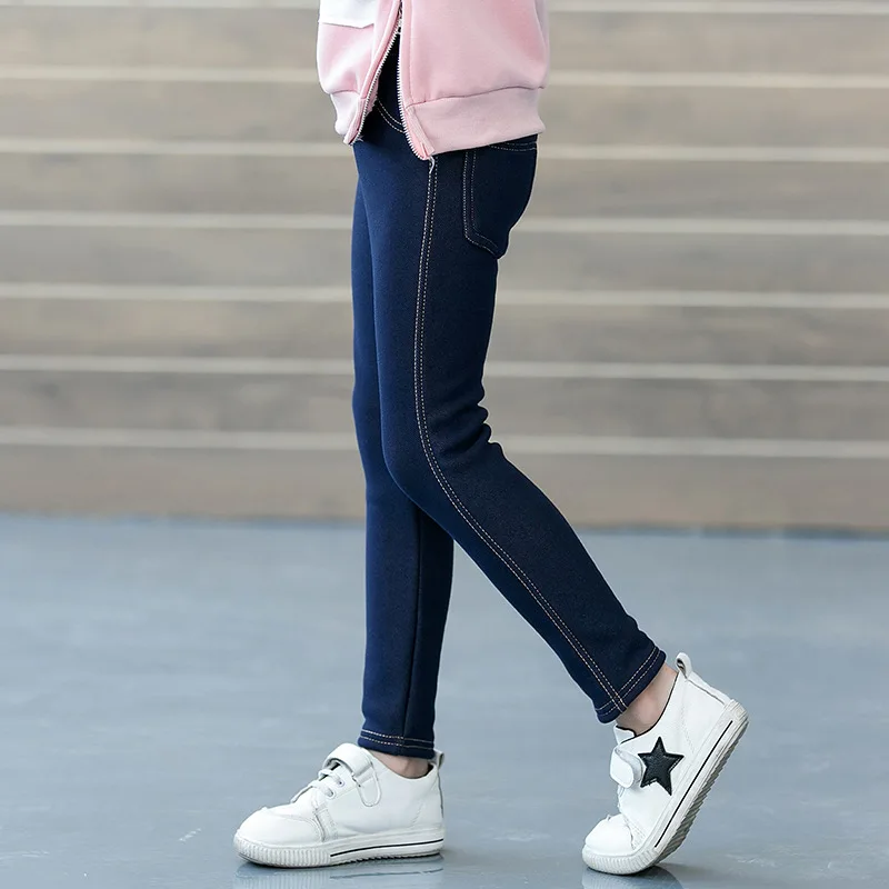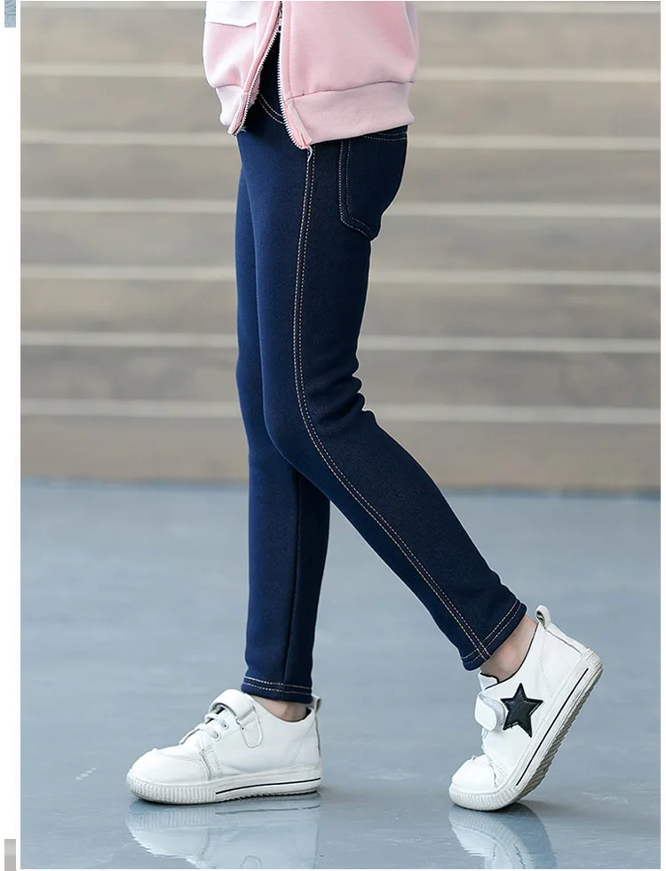 Облегающие брюки, новые бархатные плотные теплые зимние длинные джинсы стрейч, детские джинсовые брюки-карандаш