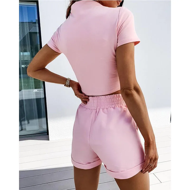 Женский комплект из 2 предметов, летний модный базовый спортивный топ и шорты для отдыха, Повседневная футболка и шорты, свободный облегающий костюм, спортивная одежда