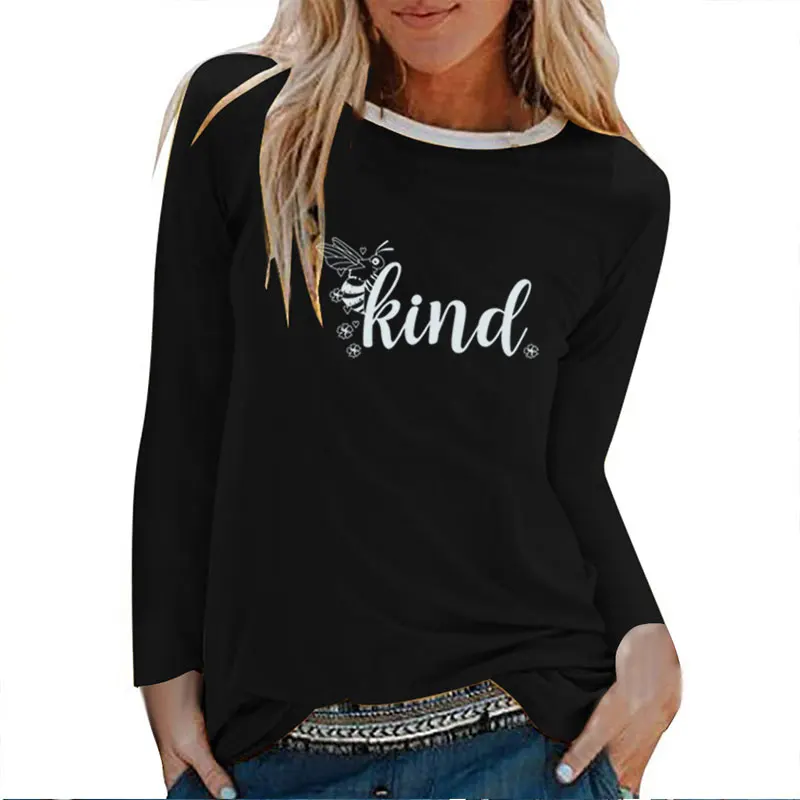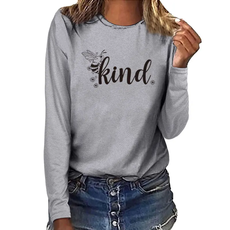 Женские футболки с длинным рукавом и принтом пчелы, осенне-зимние футболки с графическим принтом 2020, женские уличные белые топы с круглым вырезом, женские топы