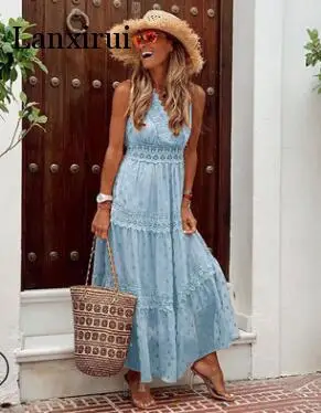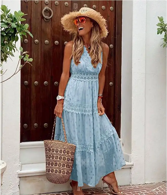 Сексуальные длинные летние пляжные платья без рукавов с глубоким V-образным вырезом