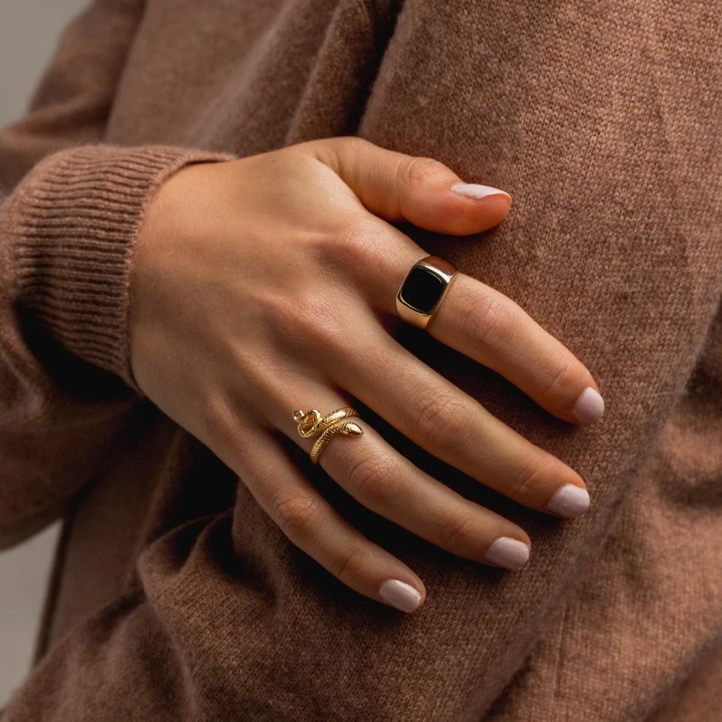 Кольцо женское золотое в стиле ретро со змеиным принтом