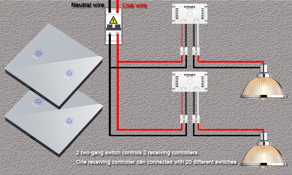 2 однопозиционных переключателя управления 2 приемных контроллера