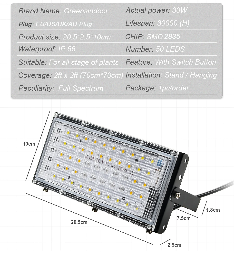 Фитолампа для выращивания растений, светодиодный светильник для выращивания растений с полным спектром, фитолампа для выращивания цветов, коробка для цветения, светодиодный светильник для выращивания в помещении