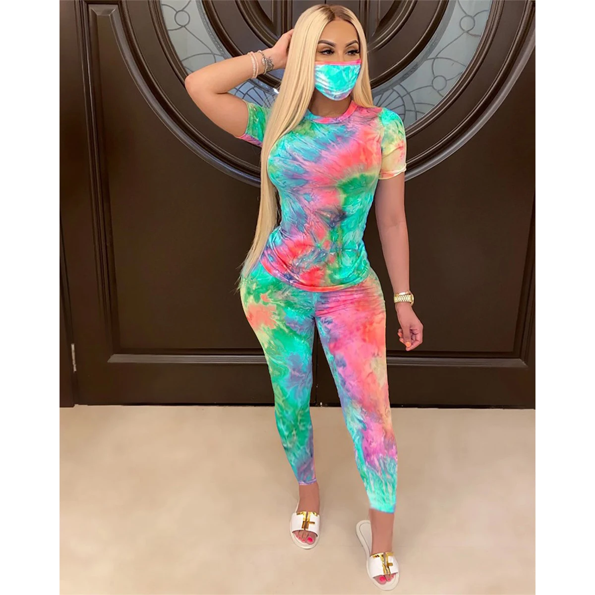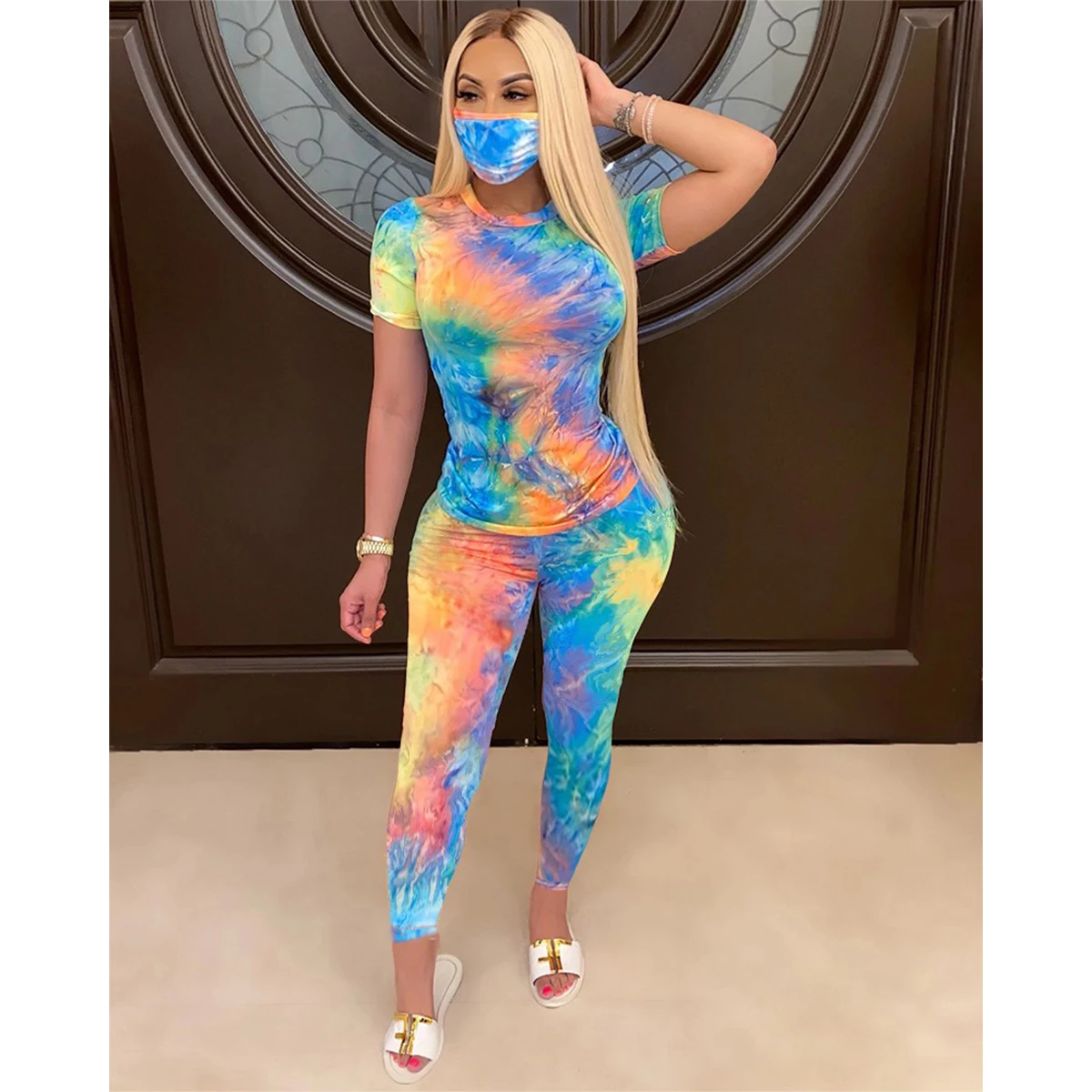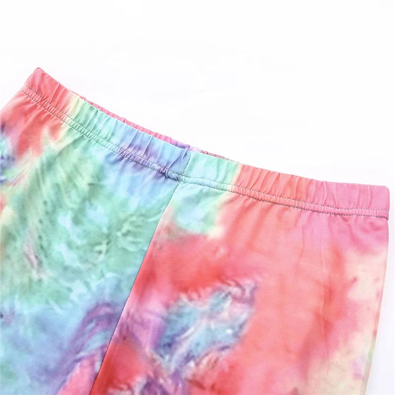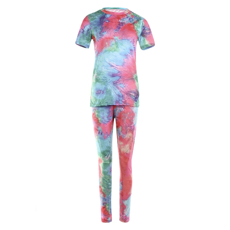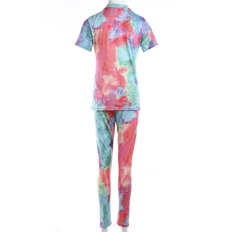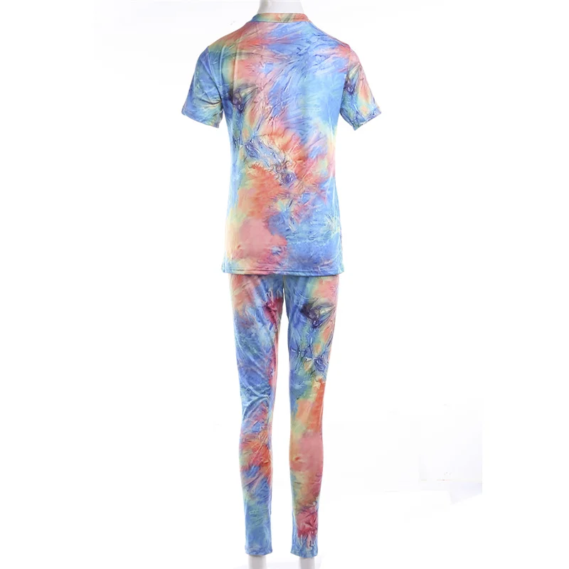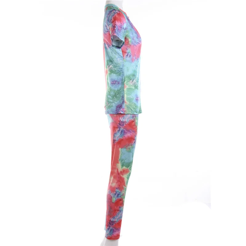 Женский спортивный костюм с принтом, футболка с коротким рукавом и круглым вырезом и шорты с высокой талией