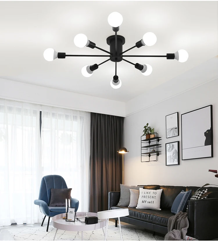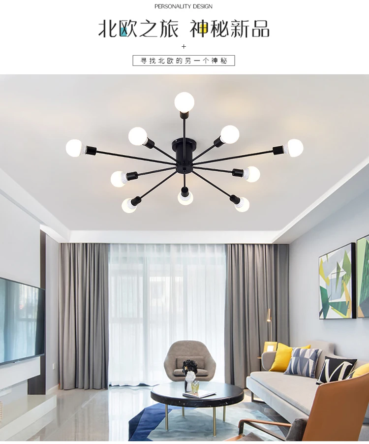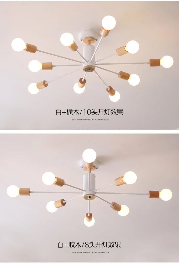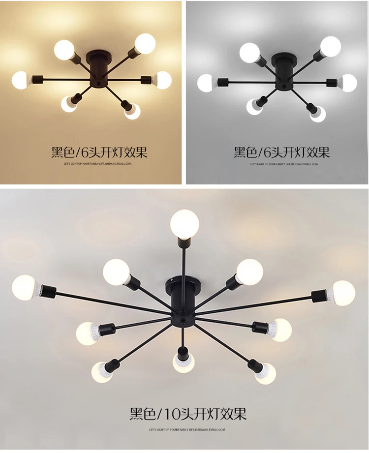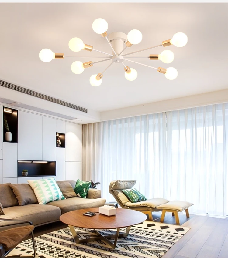Винтажные потолочные светильники в стиле ретро с цоколем E27, 6810 головок, черные, белые, золотистые лампы для гостиной, столовой