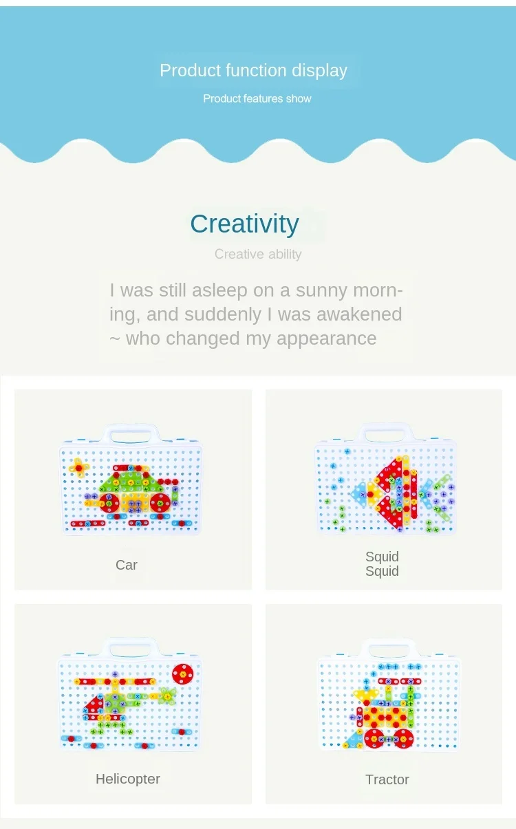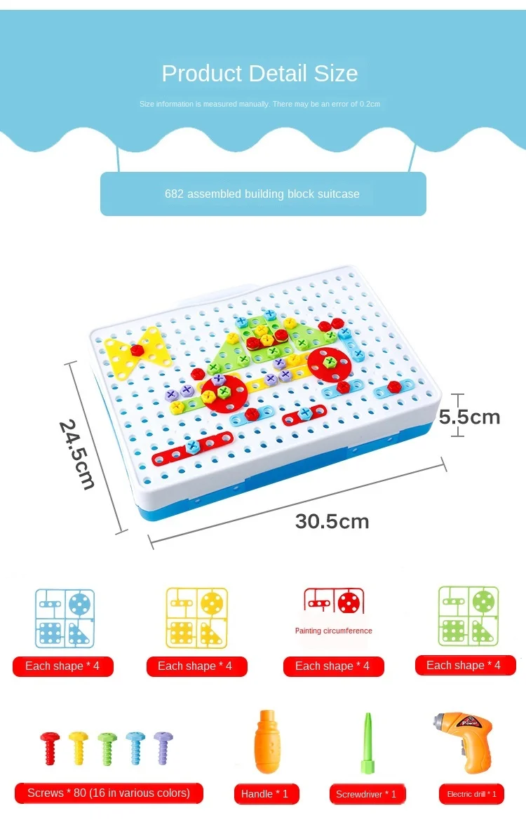 Сверлильный винт 3D креативный мозаичный пазл игрушки для детей Строительные кирпичи игрушки для детей DIY электрическая дрель набор обучающая игрушка для мальчиков