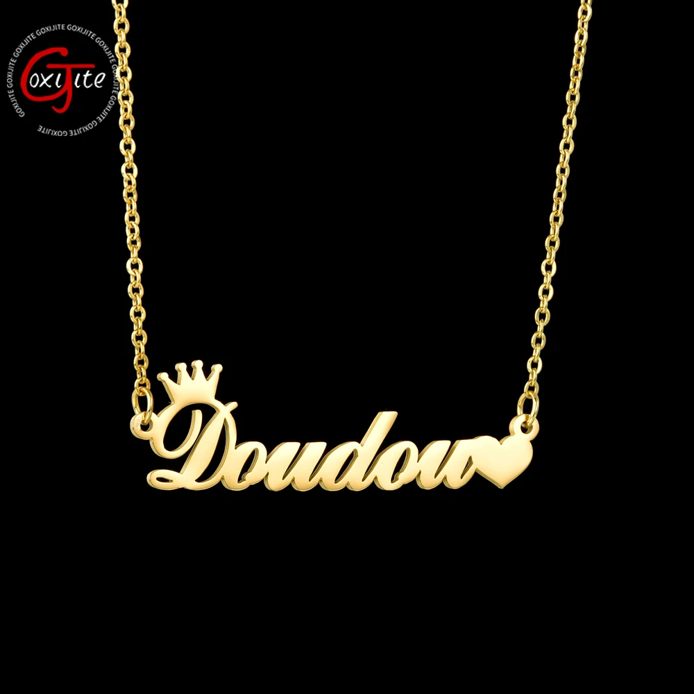 Ожерелье Goxijite ручной работы с именем и сердцем для женщин, ожерелье-чокер корона на заказ с именной табличкой в форме сердца, ожерелья в подарок любимому