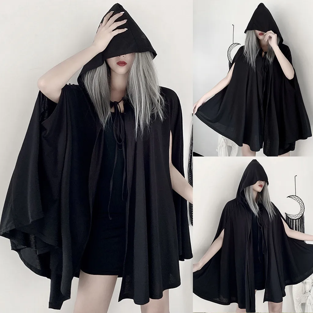Женский готический костюм с капюшоном, однотонная куртка с капюшоно...