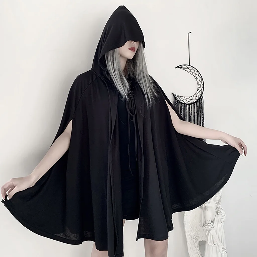 Черная куртка в стиле Харадзюку, женская накидка с капюшоном, ветро...